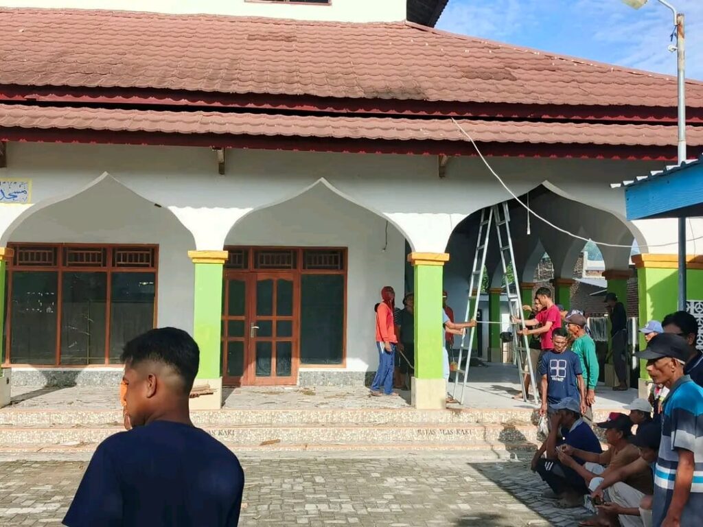 Sebelumnya, kondisi plafon masjid dinilai sudah kurang layak akibat faktor usia dan perubahan cuaca yang menyebabkan beberapa bagian mengalami kerusakan. Melihat kondisi tersebut, pengurus masjid bersama pemerintah desa dan swadaya masyarakat berinisiatif melakukan perbaikan secara menyeluruh. Proses renovasi berlangsung selama beberapa waktu dengan melibatkan tenaga kerja lokal serta dukungan dana dari para donatur dan warga setempat.